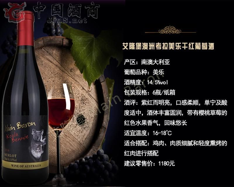 | 產品名稱 | 艾隆堡澳洲考拉美樂干紅葡萄酒 | 產品類別 | 紅酒招商 |